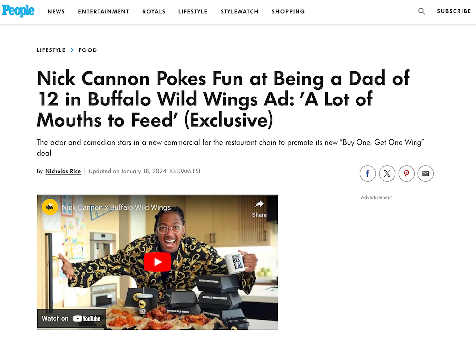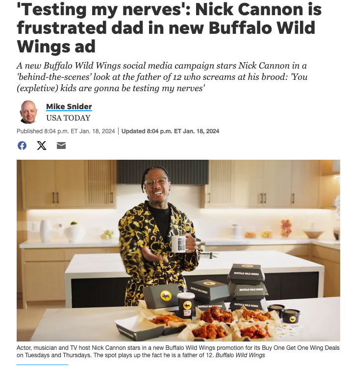 To promote two new Buffalo Wild Wings BOGO deals, we reached out to father of 12, Nick Cannon, a man who has a lot of mouths to feed.